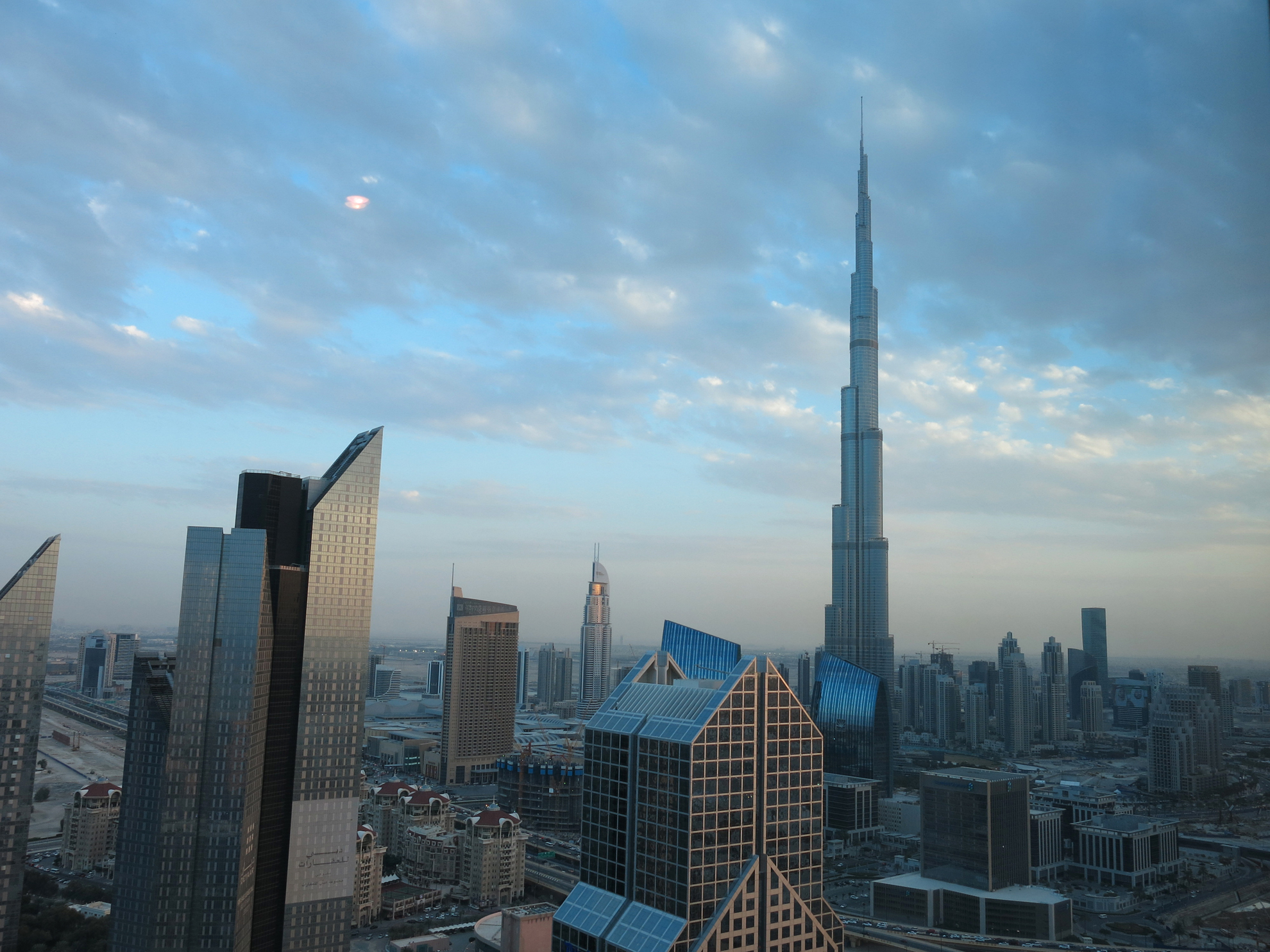Morgonvy från vårt hotell nr 2, med världens högsta byggnad Burj Khalifa i blickfånget.