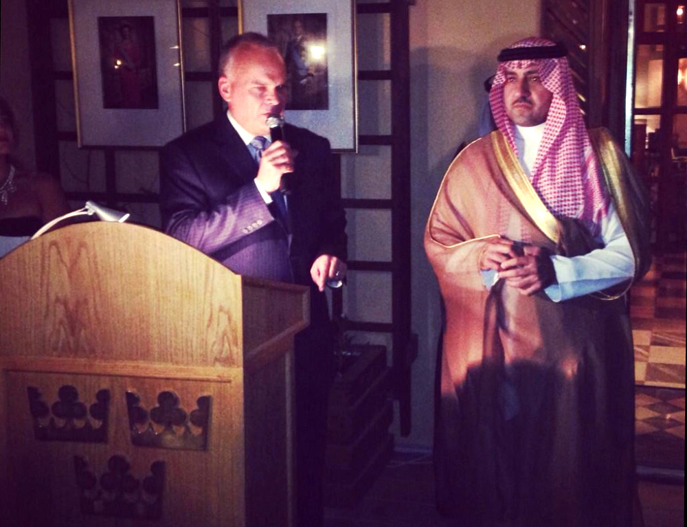 ambassoprinsSjälvklart fanns en saudisk prins bland gästerna. Det här landet har ungefär två tusen prinsar, och varje event med självaktning utsmyckas med någon av dem. Denna afton var prinsen ifråga Riyadhs guvernör, Prince Turki bin Abdullah bin Abdulaziz. Dessvärre kan inte ens ambassaderna servera alkohol när en prins är närvarande…
