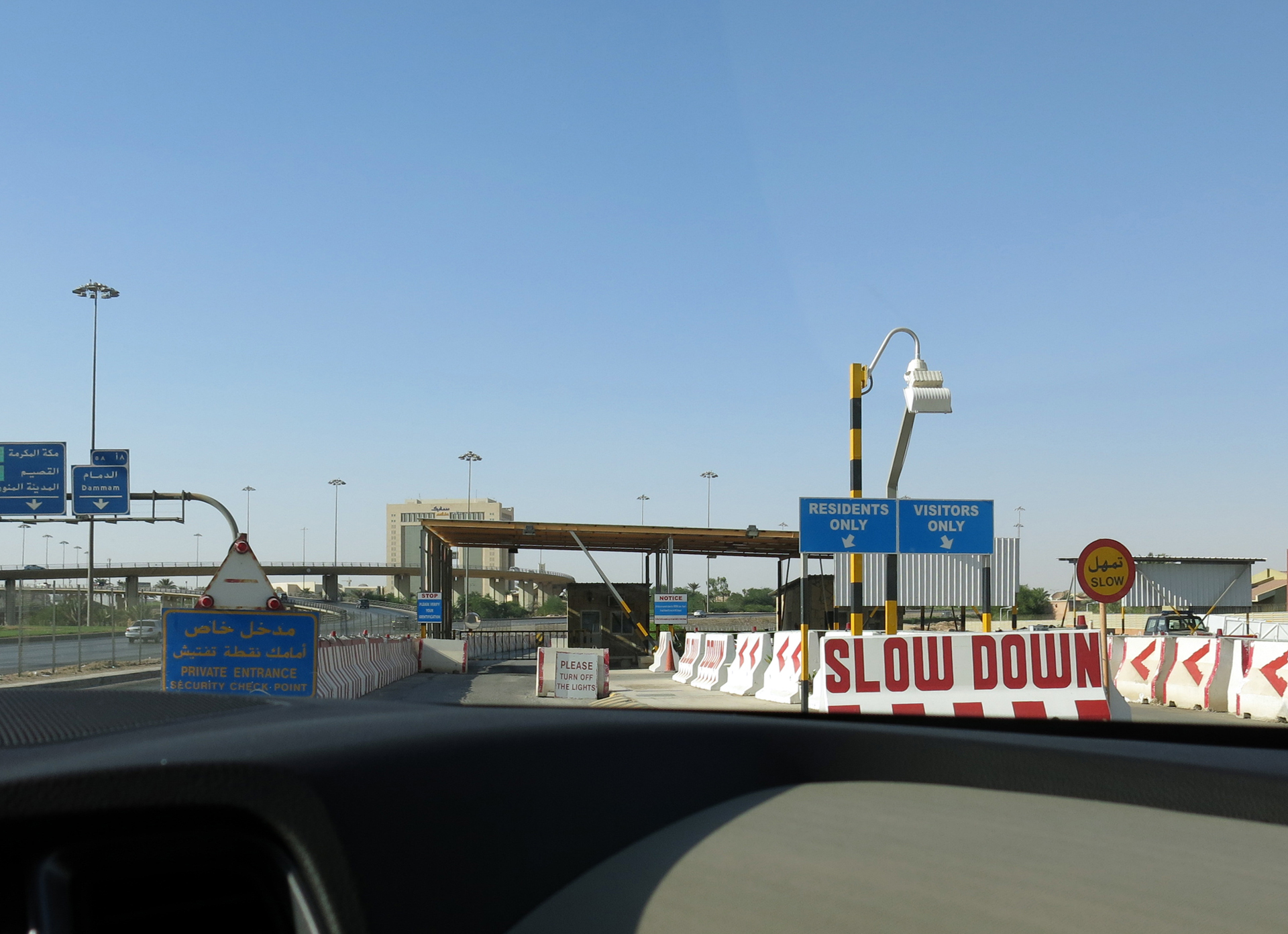 Home sweet home… Första säkerhetskontrollen på väg in i compoundet.